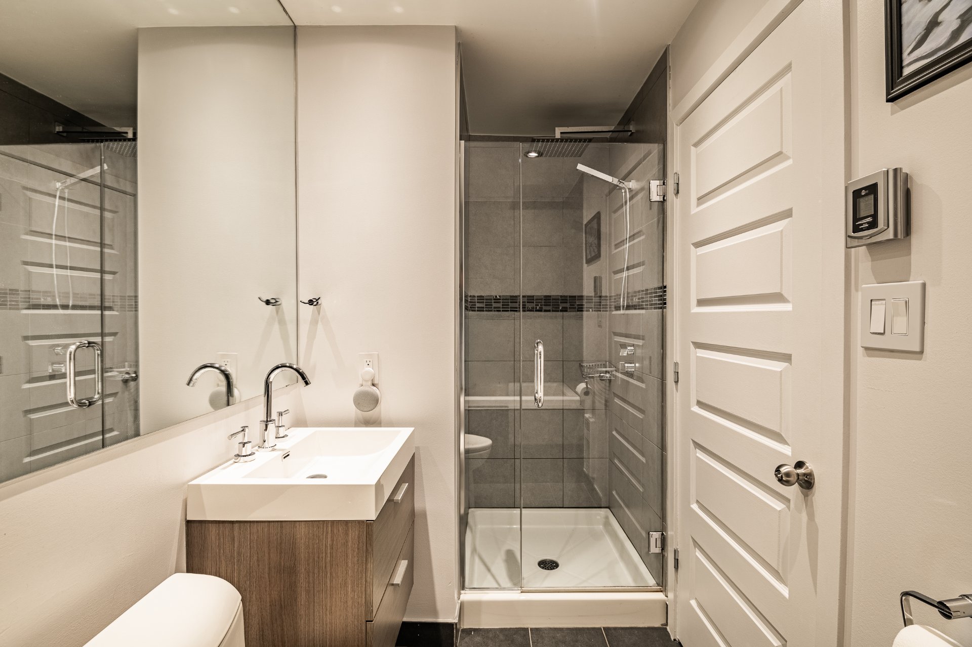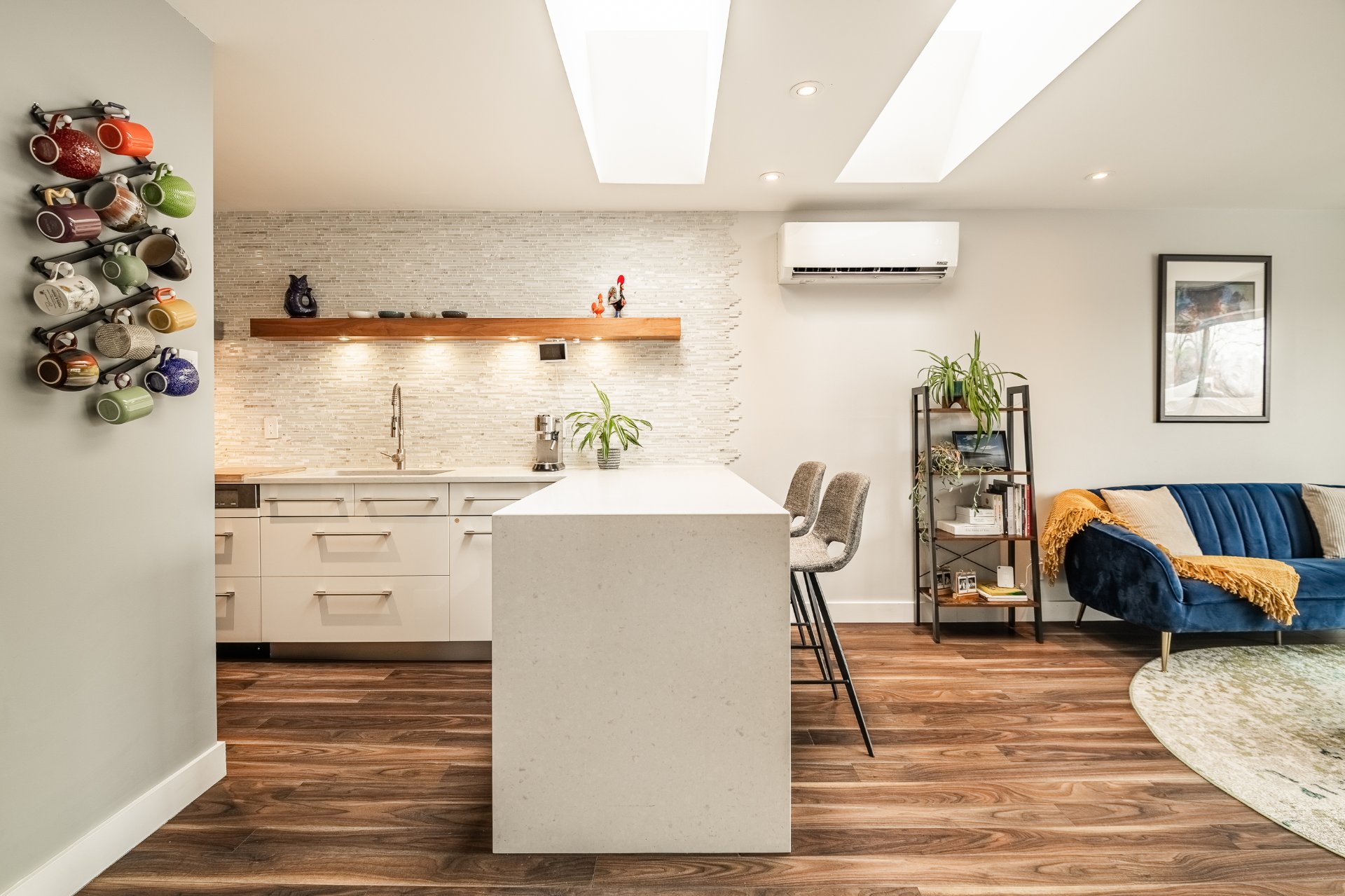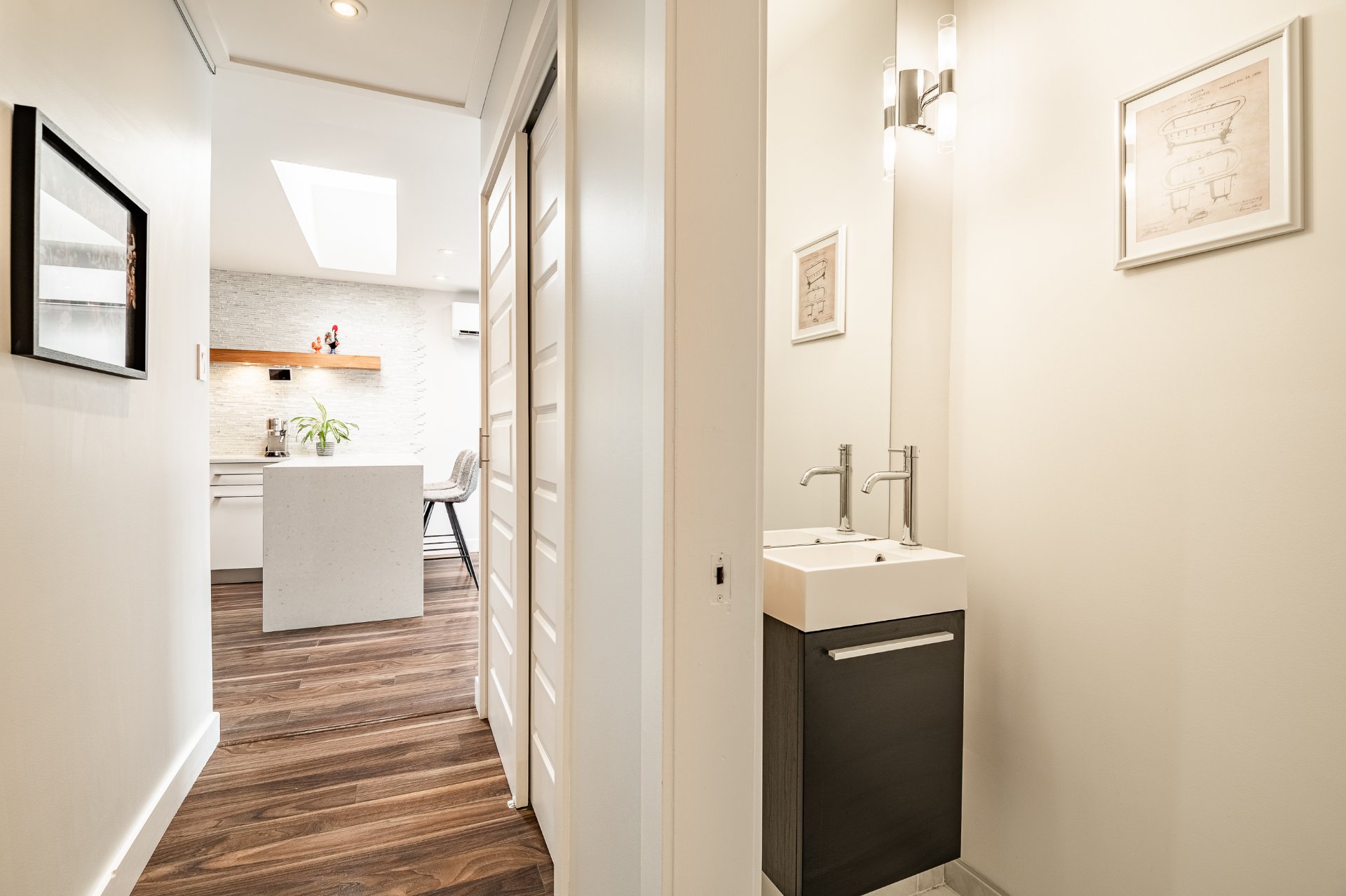 Exceptional Top Floor Condo in Pointe Saint Charles. This one of a kind condo in the highly sought after neighbourhood of PSC. This unit combines two condos to offer over 1400SqFt of living space. Featuring 4 bedrooms, 2.5 bathrooms,flooded with natural light, enhanced by skylights, showcasing a stunning kitchen that opens to the living and dining area. Very spacious balcony with ample storage, perfect for relaxing & entertaining. Condo includes 1 garage parking. Ideally located near parks, shops, schools, and all amenities in a great family friendly area. A truly unique condo.
