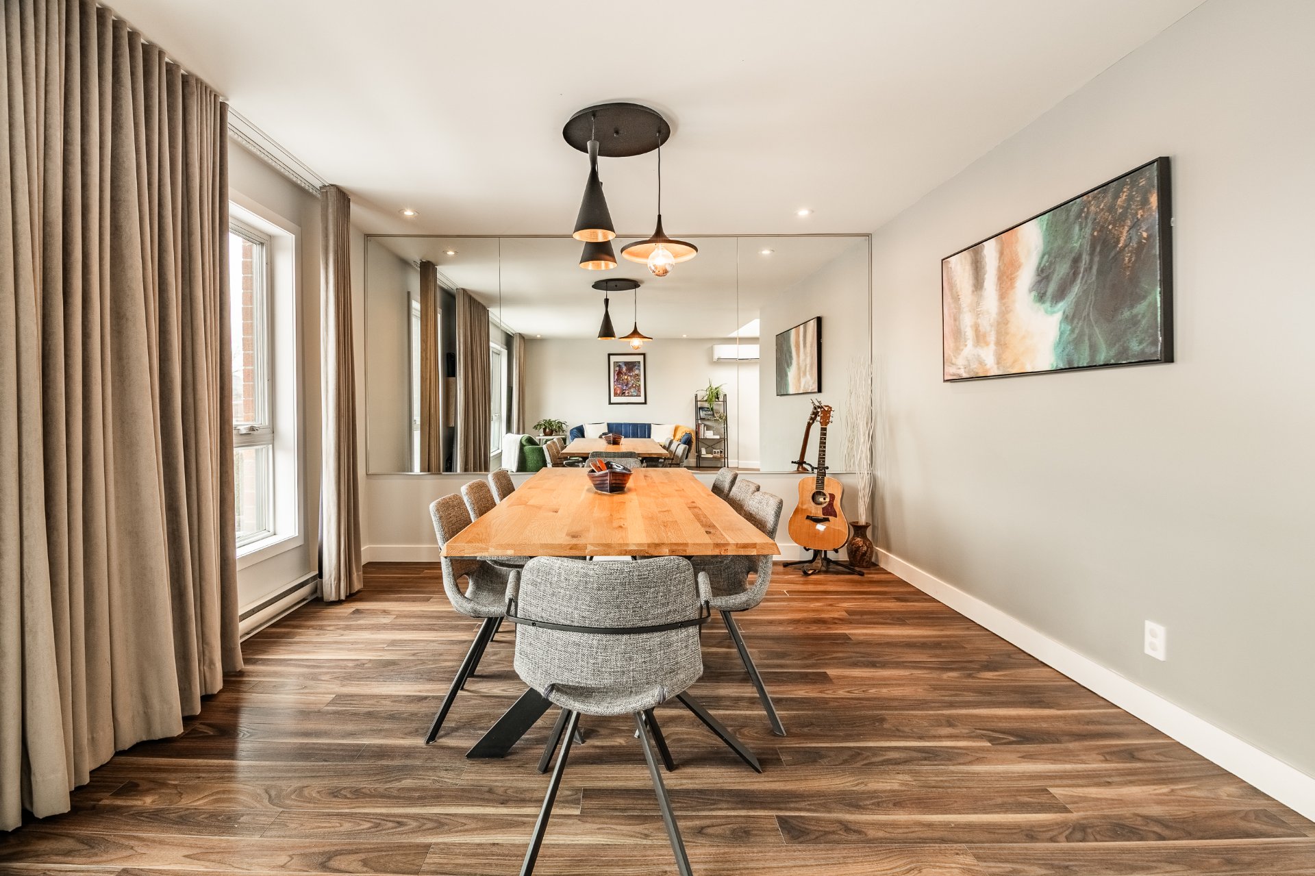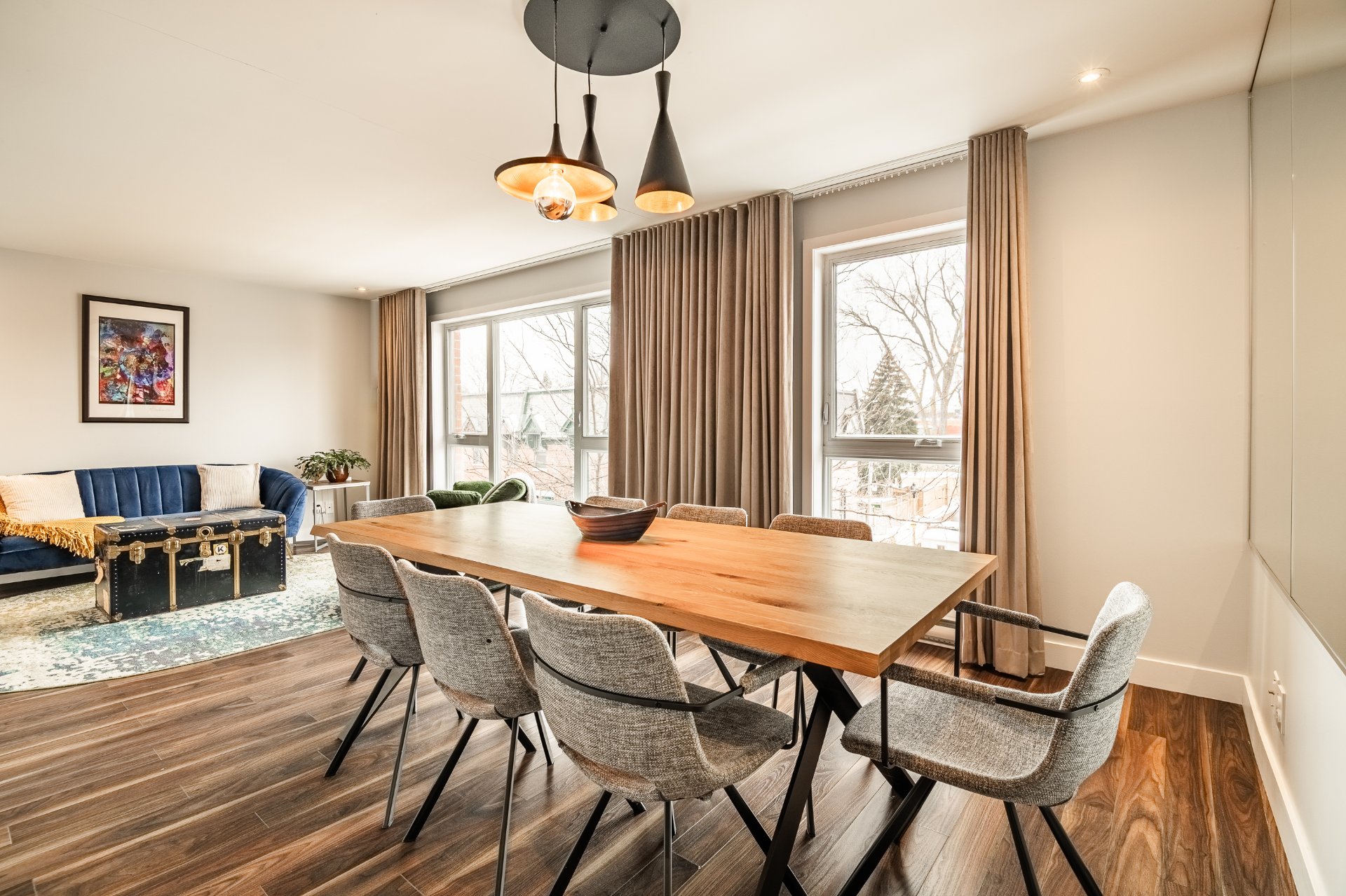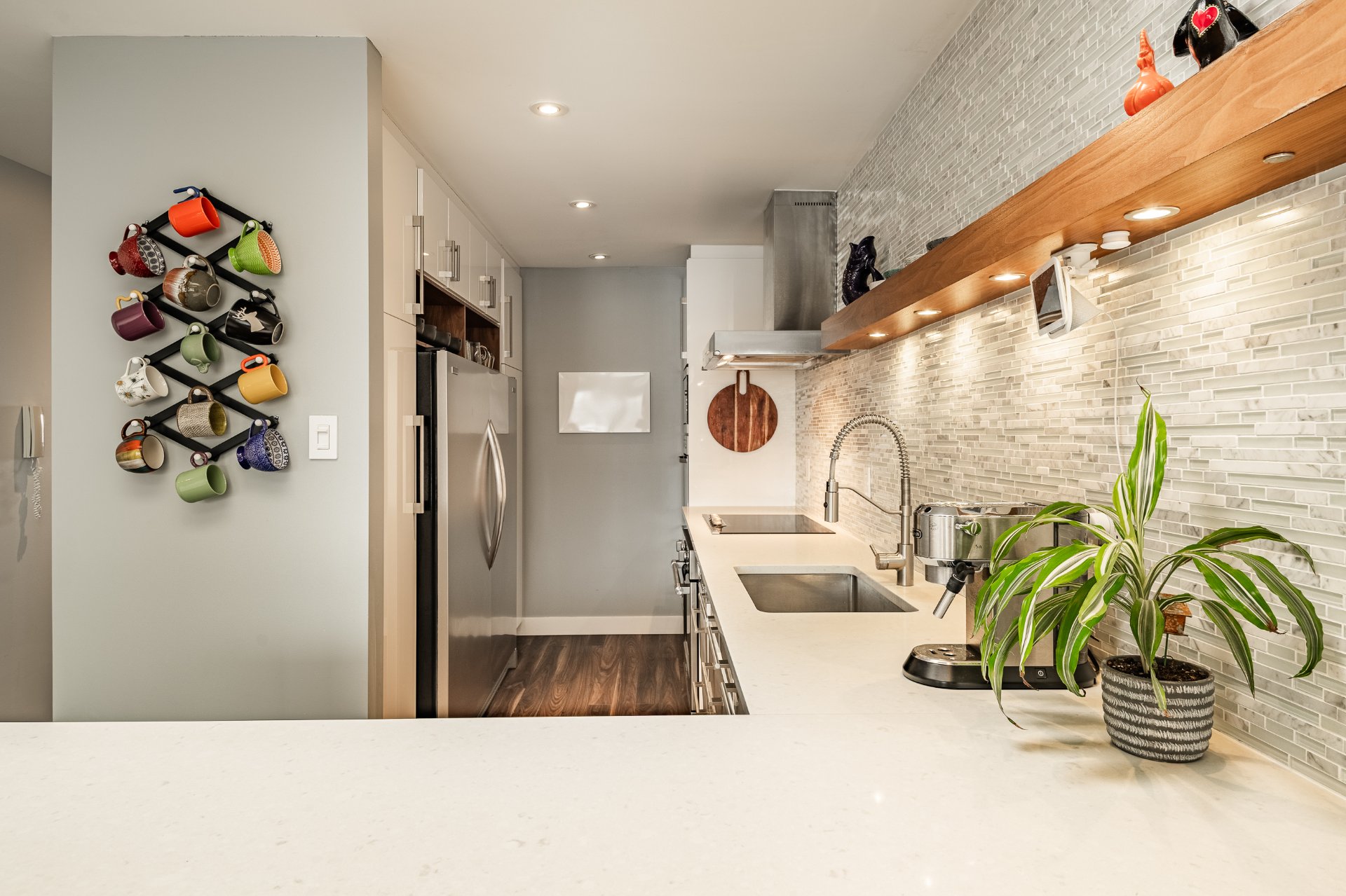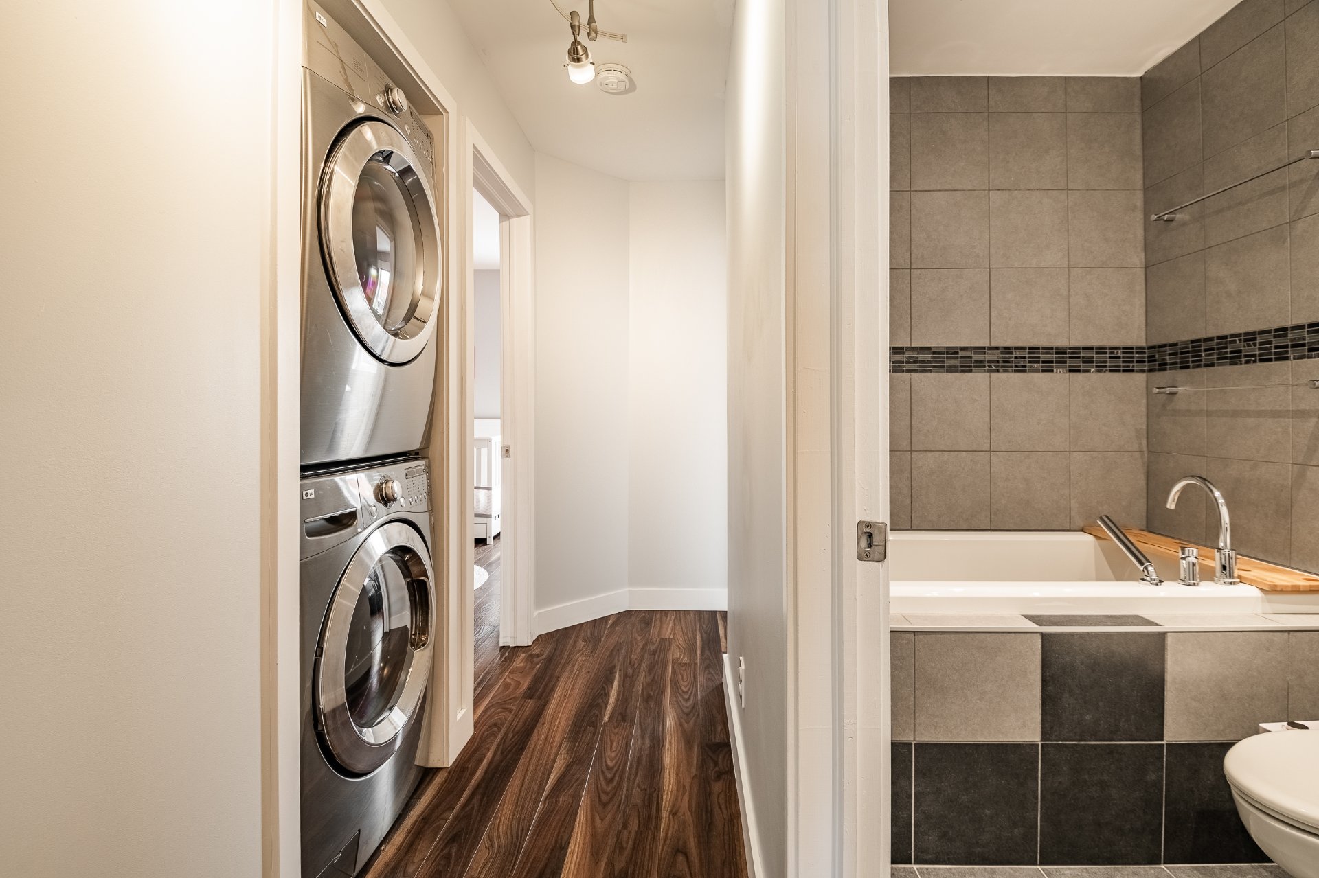 Exceptional Top Floor Condo in Pointe Saint Charles. This one of a kind condo in the highly sought after neighbourhood of PSC. This unit combines two condos to offer over 1400SqFt of living space. Featuring 4 bedrooms, 2.5 bathrooms,flooded with natural light, enhanced by skylights, showcasing a stunning kitchen that opens to the living and dining area. Very spacious balcony with ample storage, perfect for relaxing & entertaining. Condo includes 1 garage parking. Ideally located near parks, shops, schools, and all amenities in a great family friendly area. A truly unique condo.