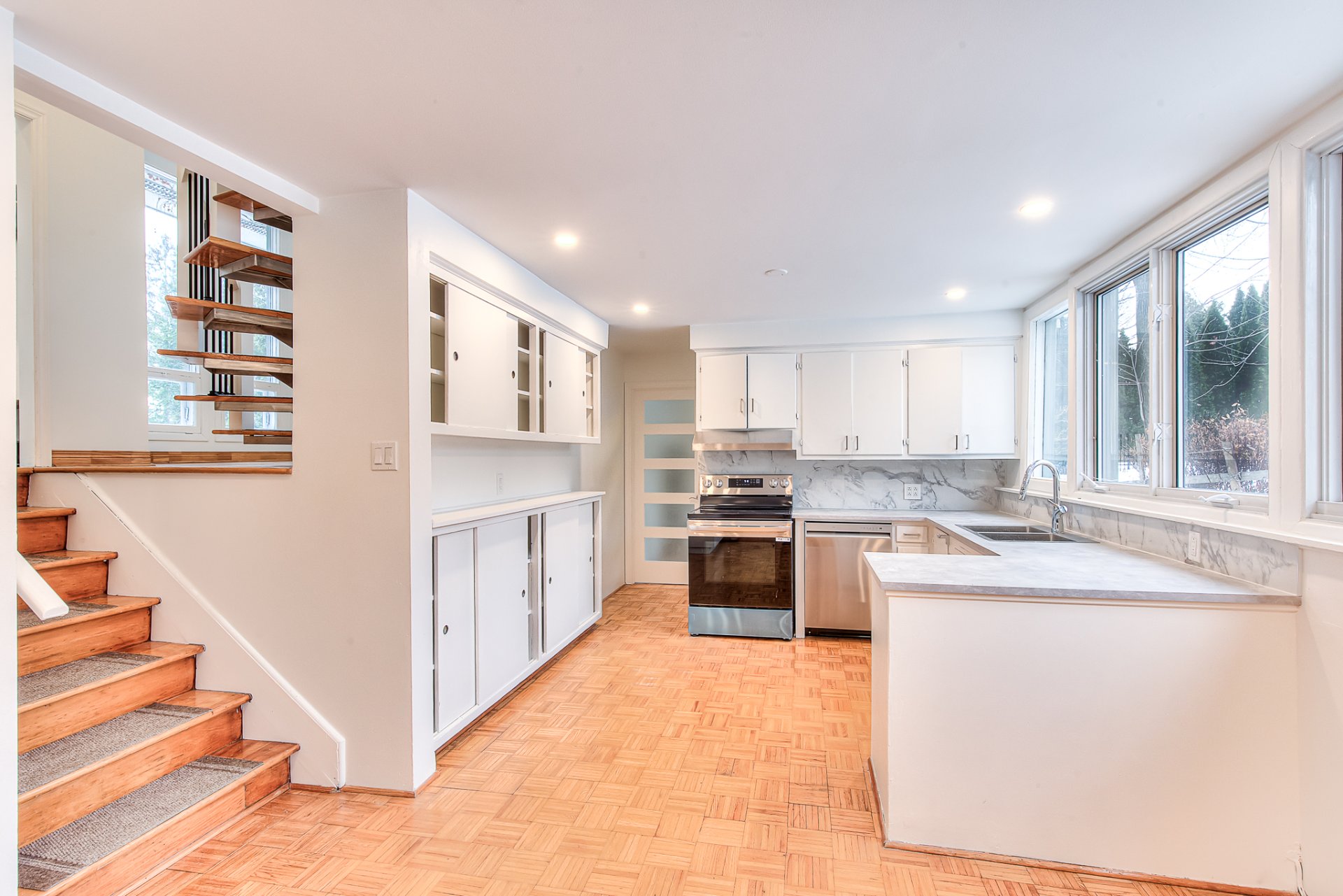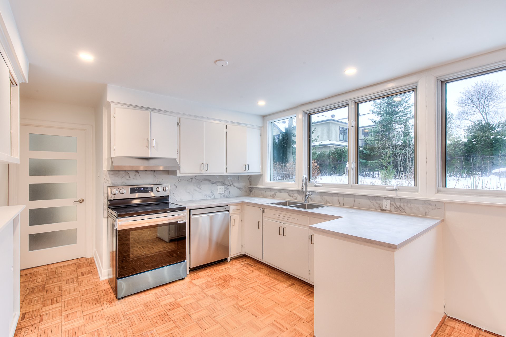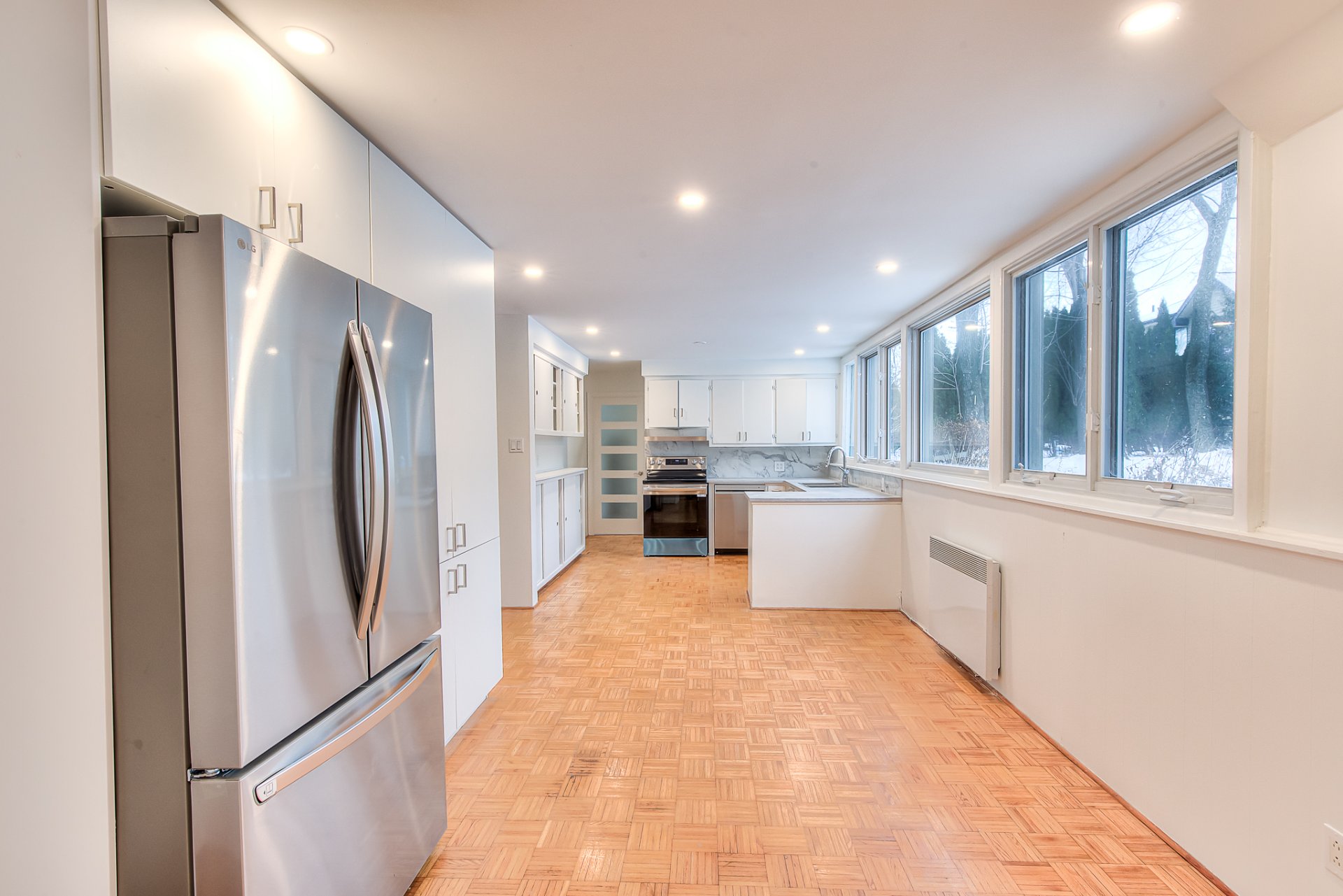 Tous les électroménagers (réfrigérateur, cuisinière, lave-vaisselle, laveuse et sécheuse). Les luminaires.